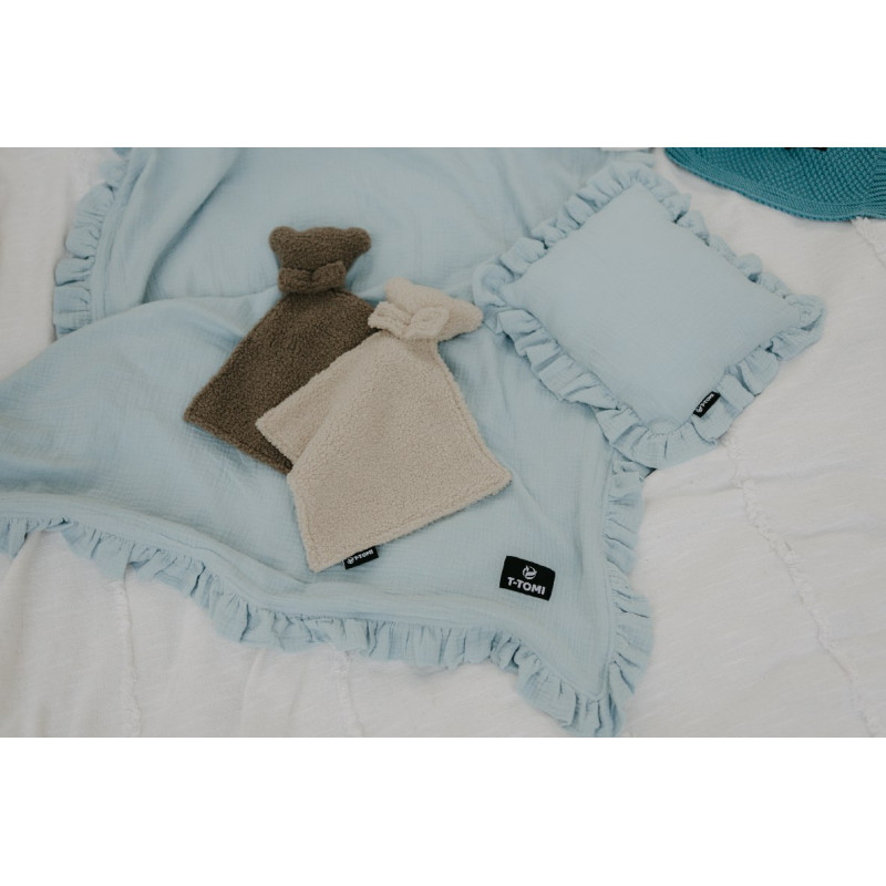 Warum nicht statt einer klassischen Decke oder Bettdecke unsere T-TOMI Musselindecke mit Rüschen kaufen? Luxus-Musselin ist derzeit ein sehr beliebtes Material und das ist kein Wunder. Seine hervorragenden Eigenschaften machen es zum Babymaterial Nummer eins. Sie können die T-TOMI Musselindecke mit Rüschen nicht nur im Kinderbett, sondern auch im Kinderwagen verwenden, wo sie bei allen Spaziergängen oder zu Hause, zum Beispiel im Körbchen, garantiert die Blicke auf sich zieht.